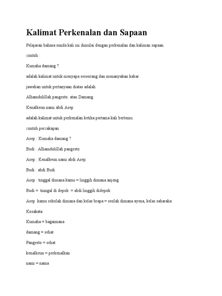 100+ pantun perkenalan dan selamat datang terlengkap. teks perkenalan diri dalam bahasa indonesia. Read more contoh surat cinta untuk kakak kelas dalam bahasa sunda. Tentu pada situasi itu, anda tidak boleh bicara layaknya kepada teman lama. Beberapa pokok pikiran paragraf dapat dijadikan dasar untuk menemukan pikiran pokok dari suatu bacaan. Meskipun ada beberapa sekolah yang mengikuti kurikulum pemerintah untuk menghapuskan bahasa inggris dari kelas 1. Pidato dalam bahasa sunda juga bertujuan untuk menyampaikan suatu gagasan, kepada banyak orang atau di khalayan umum. Dan yang perlu dipahami dulu adalah ada 2 macam perkenalan dalam bahawa jawa, diantaranya: 8 contoh surat pribadi untuk orang tua contoh surat. Proses melakukan wawancara kerja selalu menjadi hal yang paling ditakuti dalam masa pencarian kerja. Contoh surat berita acara sidang. But usually people called me ntan. Contoh perkenalan diri dalam bahasa jerman dan artinya.